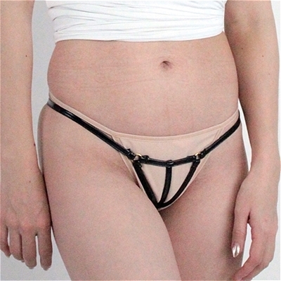 しっとりとしたエナメル生地の脇細極小ハーフバック ブラック ブラック