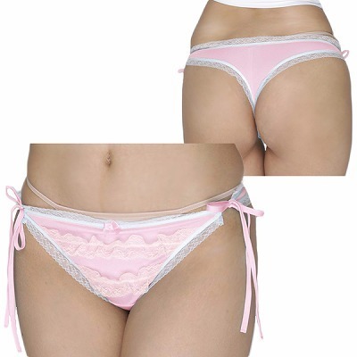 2段のフリルレースが可愛い光沢Tバック ピンク ピンク