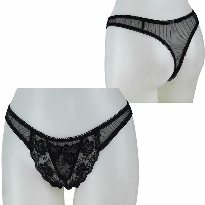 2Lサイズ レース&シースルー極薄Tバック ブラック ブラック