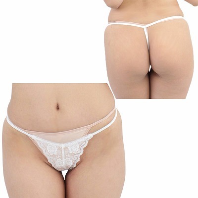 2Lサイズ レース&シースルー極薄Tバック ホワイト ホワイト