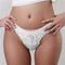 光沢サテン生地レース付きポケット付きTバック Mサイズ ホワイト ホワイト